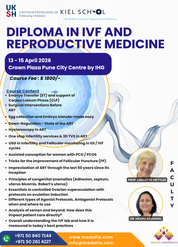 Medafia in Collaboration with Universitätsklinikum Schleswig-Holstein, Kiel – Germany, Reproductive Medicine – ART. Diploma in IVF and Reproductive Medicine course is one of the widely known assisted reproductive technology (ART). The training provides the most up-to-date one-on-one comprehensive training and clinical application for IVF and Reproductive Medicine and ART.