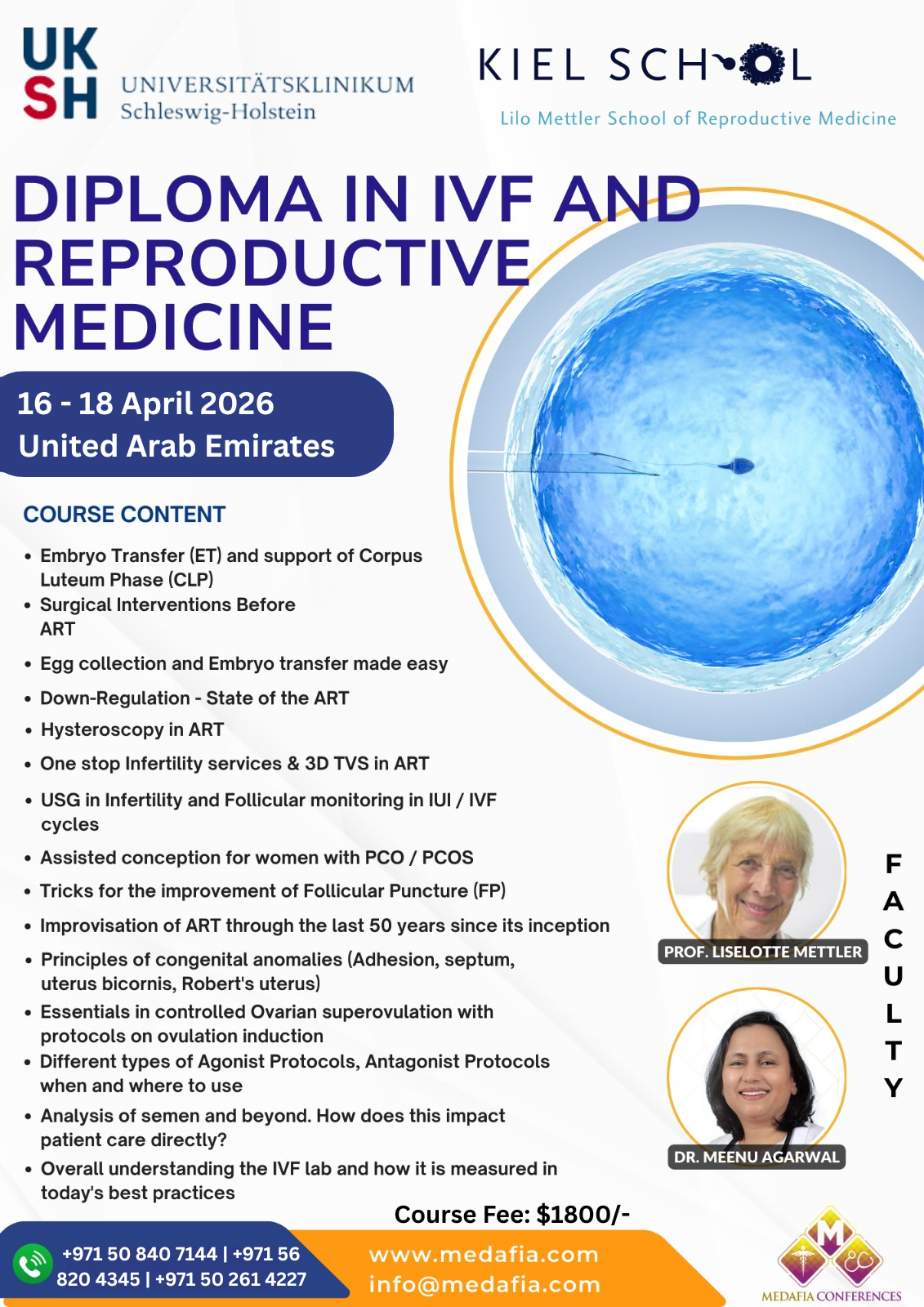 Medafia Medical Training, a beacon of excellence in healthcare training, collaborates with the renowned UKSH-Kiel Germany to bring you a world-class educational experience. Our comprehensive curriculum, developed in collaboration with Prof. Lilo Mettler, offers a holistic understanding of In Vitro Fertilization (IVF) and reproductive health.