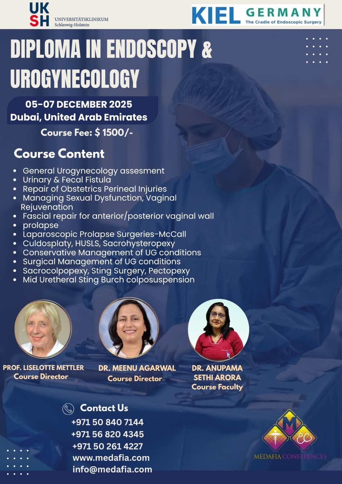 We are proud to announce a 3-day Diploma in Endoscopy and Urogynecology course. The course is conducted in collaboration with Universitätsklinikum Schleswig-Holstein UKSH-Kiel Germany. Train under International Faculty with a certificate from UKSH-Germany.