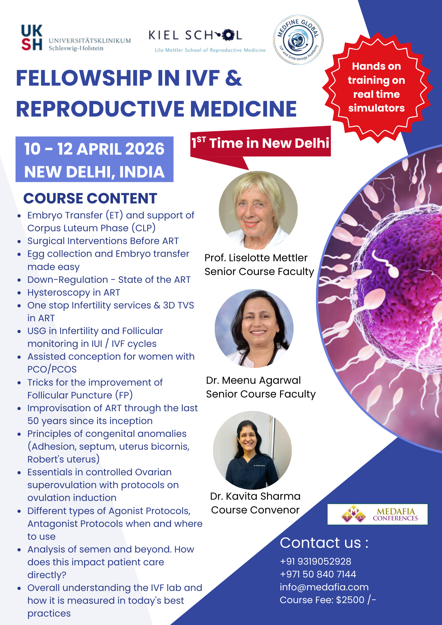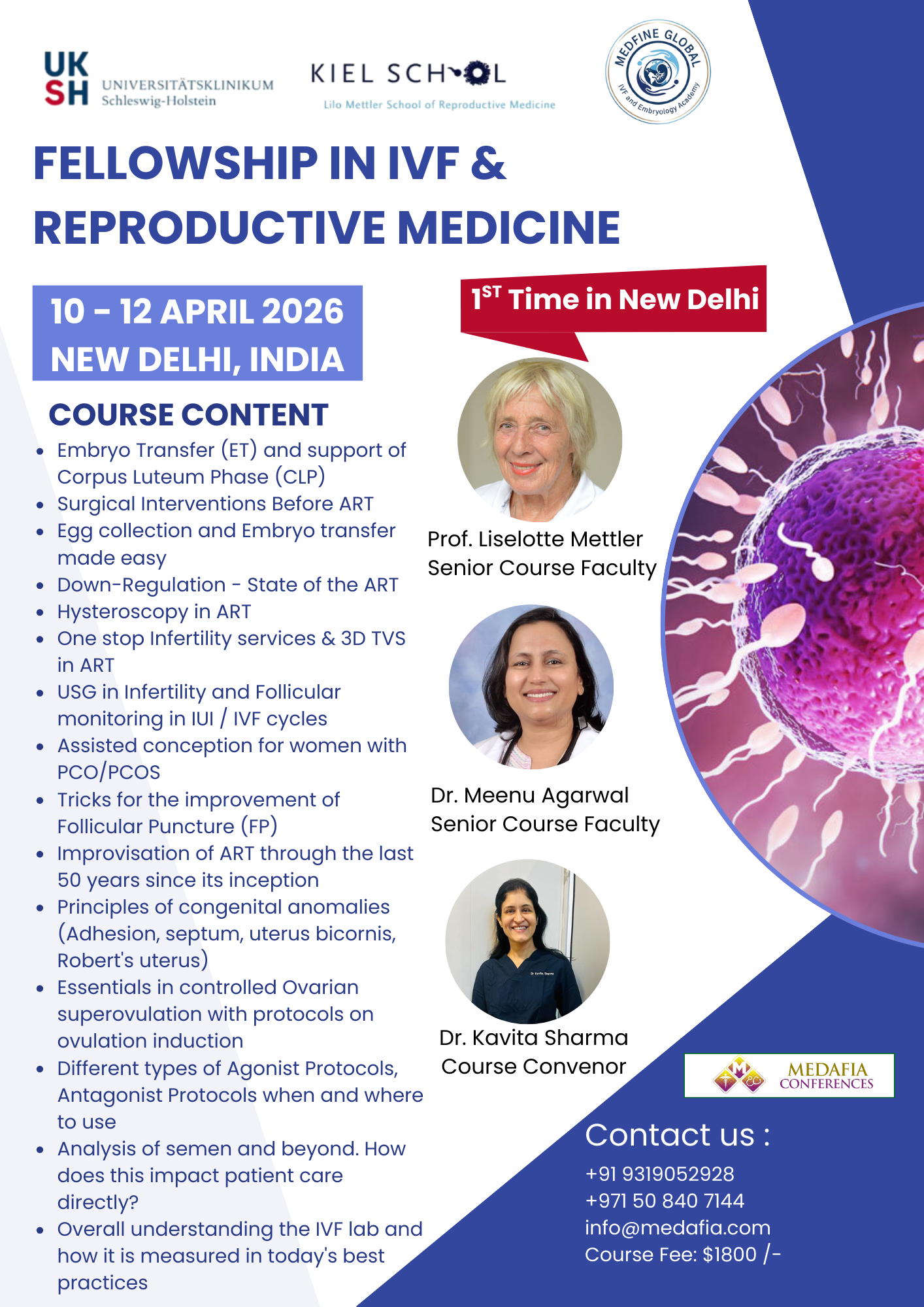 Medafia in Collaboration with Universitätsklinikum Schleswig-Holstein, Kiel – Germany, Reproductive Medicine – ART. Fellowship in IVF and Reproductive Medicine course is one of the widely known assisted reproductive technology (ART). The training provides the most up-to-date one-on-one comprehensive training and clinical application for IVF and Reproductive Medicine and ART.