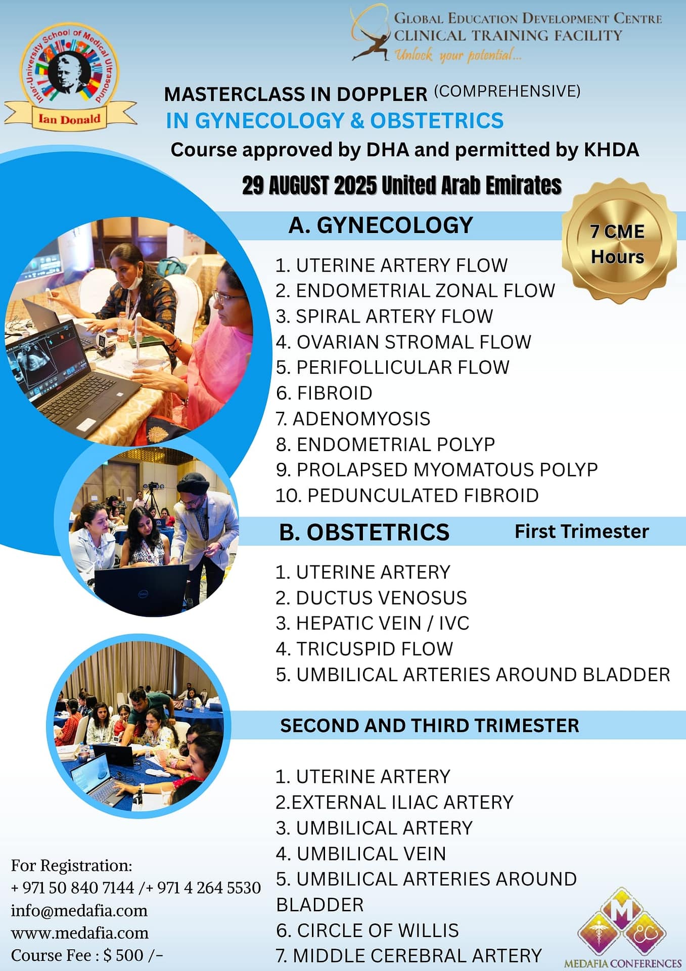 Master Class in Doppler (Comprehensive) in Gynecology & Obstetrics Course Highlights : –